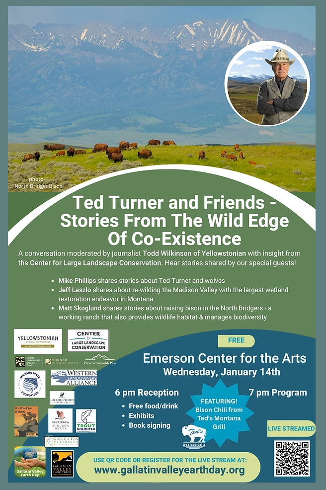 Wednesday, January 14, 7 pm in the Emerson Center Ted Turner and Friends – Stories from the Wild Edge of Co-Existence A conversation moderated by journalist Todd Wilkenson – hear re-wilding stories shared by special guests. 6 pm reception, 7 pm program, Emerson Center in Bozeman. There is also a free livestream. Webinar Registration - […]